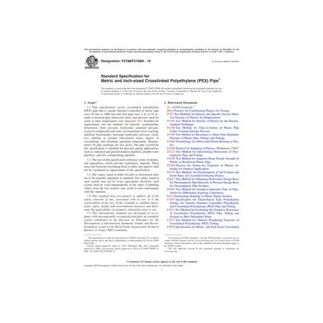 ASTM F2788/F2788M-19 Standard Specification for Metric and Inch-sized Crosslinked Polyethylene (PEX) Pipe