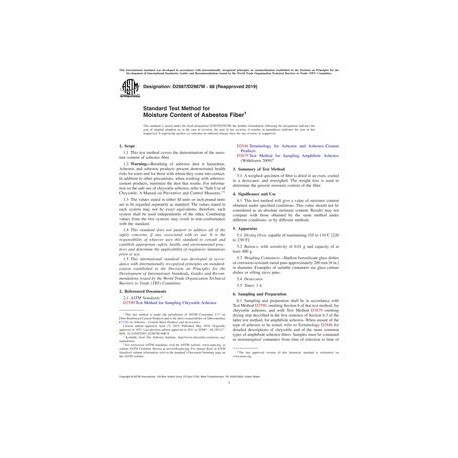 ASTM D2987/D2987M-88(2019) Standard Test Method for Moisture Content of Asbestos Fiber