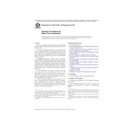 ASTM C1120/C1120M-98(2019) Standard Test Method for Wash Test of Asbestos
