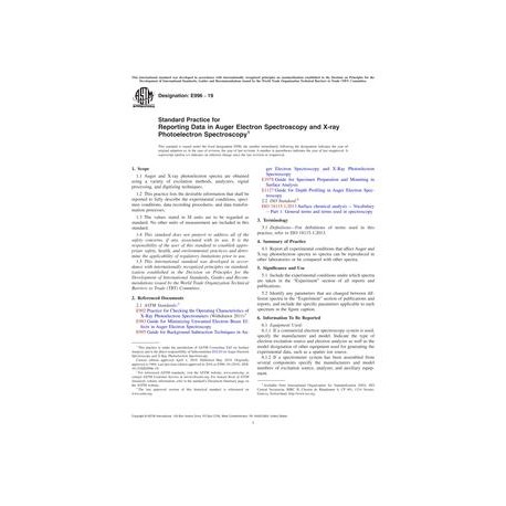 ASTM E996-19 Standard Practice for Reporting Data in Auger Electron Spectroscopy and X-ray Photoelectron Spectroscopy