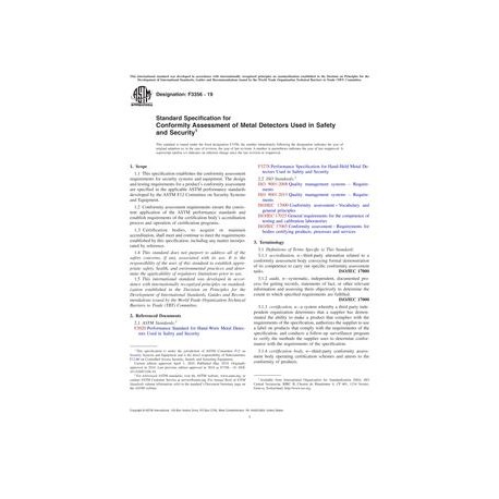 ASTM F3356-19 Standard Specification for Conformity Assessment of Metal Detectors Used in Safety and Security