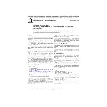 ASTM F1887-14(2019) Standard Test Method for Measuring the Coefficient of Restitution (COR) of Baseballs and Softballs