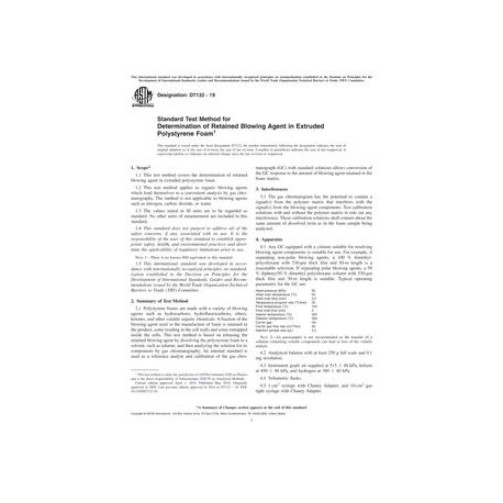 ASTM D7132-19 Standard Test Method for Determination of Retained Blowing Agent in Extruded Polystyrene Foam