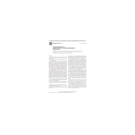 1.3This specification defines the minimum property requirements for aviation turbine fuel that contain synthesized hydrocarbons and lists acceptable additives for use in civil operated engines and aircrafts. Specification D7566 is directed at civil applications, and maintained as such, but may be adopted for military, government, or other specialized uses.
