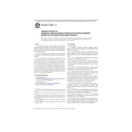 ASTM D8250-19 Standard Practice for Applying a Hazard Analysis Critical Control Points (HACCP) System for Cannabis Consumable Products