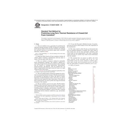 ASTM C1303/C1303M-19 Standard Test Method for Predicting Long-Term Thermal Resistance of Closed-Cell Foam Insulation