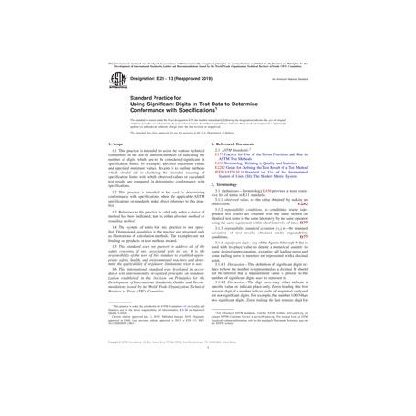 ASTM E29-13(2019) Standard Practice for Using Significant Digits in Test Data to Determine Conformance with Specifications