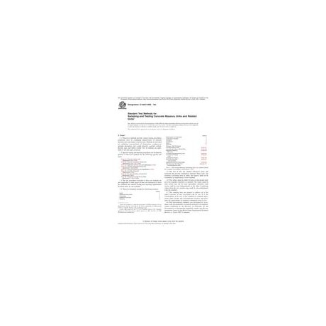 1.1These test methods provide various testing procedures commonly used for evaluating characteristics of concrete masonry units and related concrete units. Methods are provided for sampling, measurement of dimensions, compressive strength, absorption, unit weight (density), moisture content, flexural load, and ballast weight. Not all methods are applicable to all unit types, however.