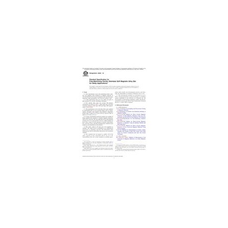 This specification covers free-machining ferritic stainless soft magnetic alloy produced or supplied expressly in cold-finished bar form for use in magnetic cores and other parts requiring a high permeability, low-coercivity stainless steel. Two specific alloy types are covered: Grades, alloy type 1 and Grades, alloy type 2. The material shall conform to the chemical composition requirements specified. Material shall be tested using either ring, permeameter, or coercimeter test methods to meet the required specifications.