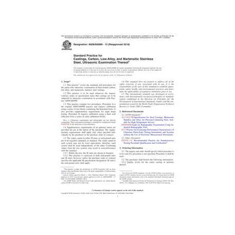 ASTM A609/A609M-12(2018) Standard Practice for Castings, Carbon, Low-Alloy, and Martensitic Stainless Steel, Ultrasonic Examination Thereof