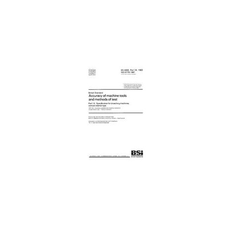 BS 4656-14:1983 Accuracy of machine tools and methods of test. Specification for broaching machines, vertical internal type