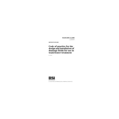 Cross References: BS EN 1085 BS EN 12566-1 BS EN 12566-3 BS EN 12566-4 BS EN ISO 10319 ISO 10319:1993 CEN/TR 12566-2:2005 Construction (Health, Safety and Welfare) Regulations 1996 Construction (Design and Management) Regulations 1994 Confined Spaces Regulations 1997 Water Resources Act 1991 as amended by the Environment Act 1995 Water (Northern Ireland) Order 1999 Water Environment (Controlled Activities) (Scotland) Regulations 2005 BS 4346-3 BS EN 295-1 BS EN 295-2 BS EN 295-3 BS EN 295-4 BS EN 476 BS EN 598 BS EN 681-1 BS EN 773 BS EN 877 BS EN 1123 BS EN 1124 BS EN 1401-1 BS EN 1453-1 BS EN 1852-1 BS EN 12056-2 BS EN 12255 BS EN 13244 BS EN ISO 10320 PAS 27:1999