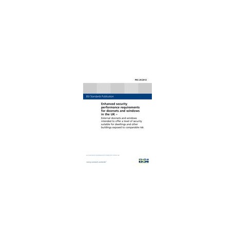 BS PAS 24:2012 Enhanced security performance requirements for doorsets and windows in the UK. External doorsets and windows intended to offer a level of security suitable for dwellings and other buildings exposed to comparable risk