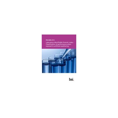 BS PAS 820:2012 Laboratory-identifiable forensic codes. Classification of performance when exposed to artificial weathering