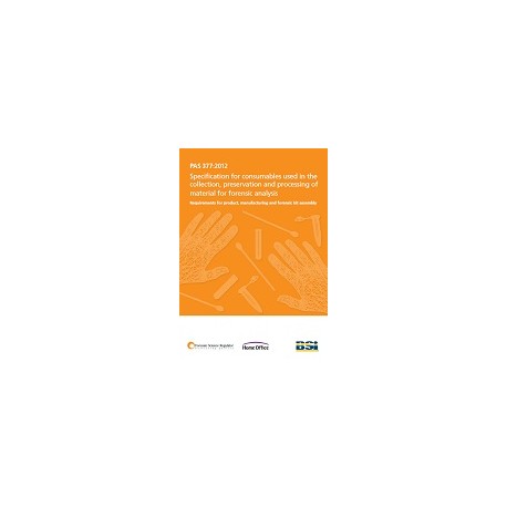 BS PAS 377:2012 Specification for consumables used in the collection, preservation and processing of material for forensic analysis. Requirements for product, manufacturing and forensic kit assembly