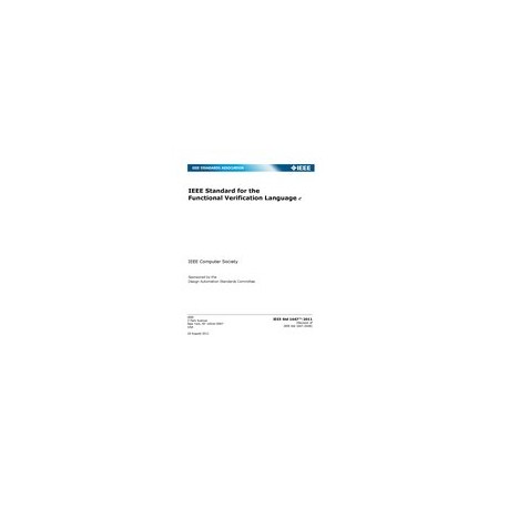 This standard defines the e functional verification language. This standard aims to serve as an authoritative source for the definition of (a) syntax and semantics of e language constructs, (b) the e language interaction with standard simulation languages, and (c) e language libraries.