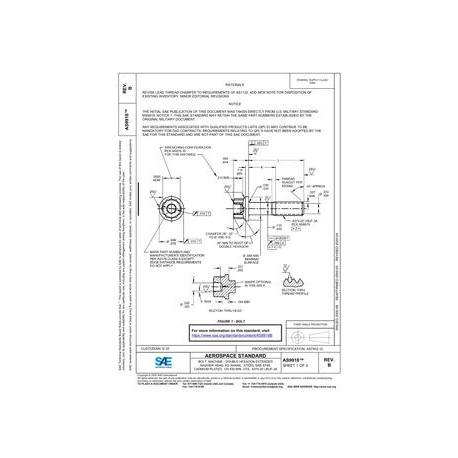 SAE AS9918B BOLT, MACHINE - DOUBLE HEXAGON EXTENDED WASHER HEAD, PD SHANK, STEEL SAE 8740, CADMIUM PLATED, 125 KSI MIN. UTS, .4375-20 UNJF-3A