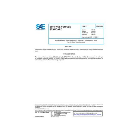 SAE J1051_202003 Force-Deflection Measurements of Cushioned Components of Seats for Off-Road Work Machines (Stabilized: Mar 2020)