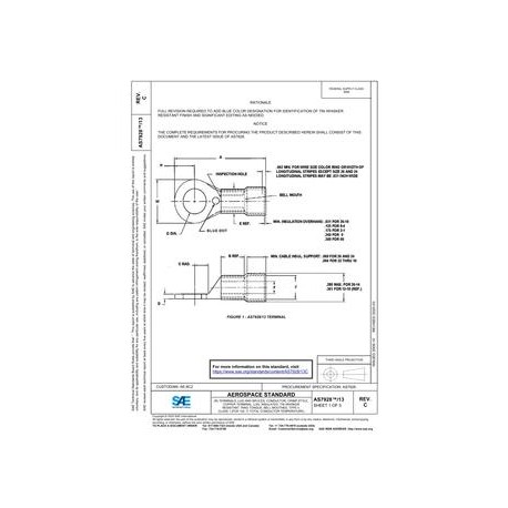 SAE AS7928/13C TERMINALS, LUG AND SPLICES, CONDUCTOR, CRIMP STYLE, COPPER TERMINAL, LUG, INSULATED, TIN WHISKER RESISTANT, RING TONGUE, BELL-MOUTHED, TYPE II, CLASS 1 (FOR 150 ¿¿C TOTAL CONDUCTOR TEMPERATURE)