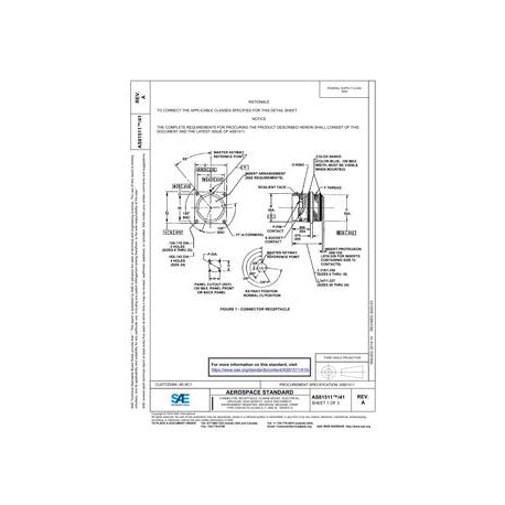SAE AS81511/41A CONNECTOR, RECEPTACLE, FLANGE MOUNT, ELECTRICAL, CIRCULAR, HIGH DENSITY, QUICK DISCONNECT, ENVIRONMENT RESISTING, INDIVIDUAL RELEASE, CRIMP TYPE CONTACTS (CLASS A, F, AND W - SERIES 3)