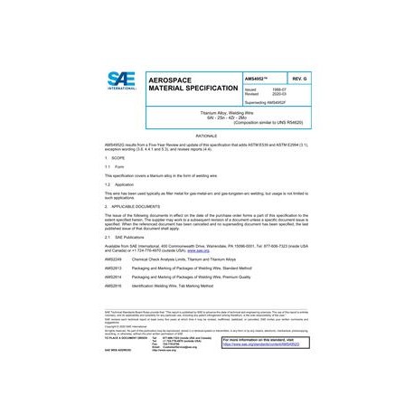 SAE AMS4952G Titanium Alloy, Welding Wire 6AI - 2Sn - 4Zr - 2Mo