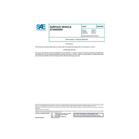 This SAE standard includes hydraulic backhoes which have no more than 190 degrees of rotational swing and are mounted on wheeled tractors and crawler tractors. Illustrations used are not intended to include all existing commercial machines or to be exact descriptions of any particular machine. The illustrations have been chosen to describe the principles to be used in applying this standard.