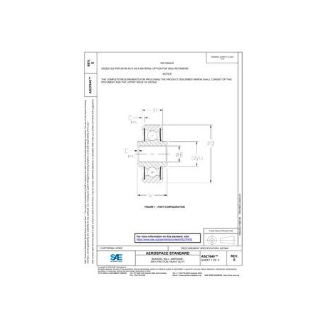 SAE AS27640E BEARING, BALL, AIRFRAME, ANTI-FRICTION, HEAVY DUTY