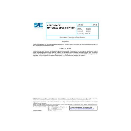This SAE Standard specifies processes for the cleaning of metal surfaces to remove any extraneous or undesirable material or deposits at any stage of manufacture, storage or service and for the preparation of these surfaces for further treatment. Any necessary stress-relieving treatments are also included. This Standard does not override special preparatory procedures specified in individual Defence Standards, Defence Specifications, DTD Process Specifications, DG Ships Specifications and Naval Defence Standards. It also does not cover cleaning operations associated with the maintenance of internal combustion engines, the preliminary removal of heavy deposits of oil, grease, or dirt accumulated during operational service, preparations for welding and the cleaning of electrical contacts.