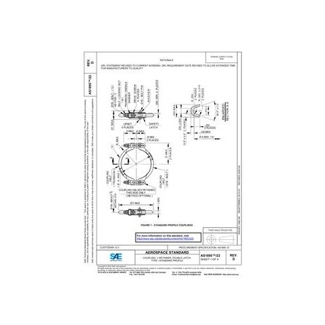 SAE AS1895/22D COUPLING, V-RETAINER, DOUBLE LATCH, TYPE I STANDARD PROFILE