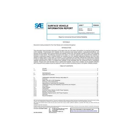 SAE J2958_202002 Report on Unmanned Ground Vehicle Reliability