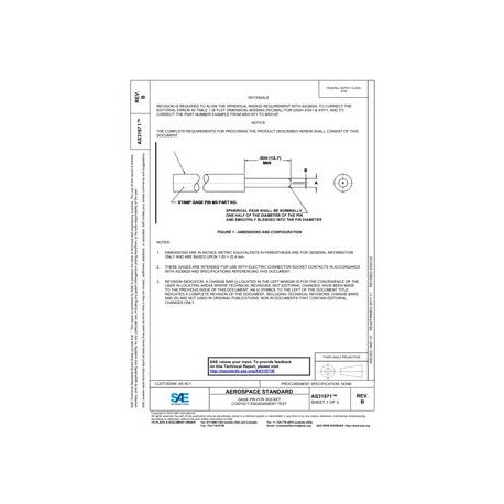 SAE AS31971B GAGE PIN FOR SOCKET CONTACT ENGAGEMENT TEST