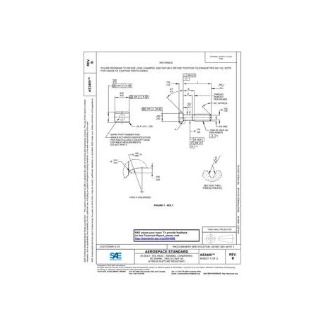 SAE AS3409B BOLT, TEE HEAD - AMS5662, CHAMFERED, PD SHANK, .1900-32 UNJF-3A (STRESS RUPTURE RESISTANT)
