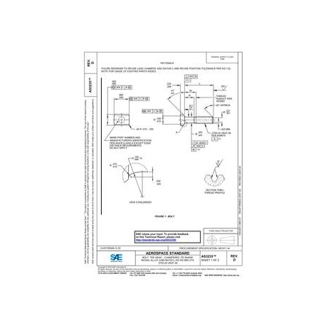 SAE AS3235D BOLT, TEE HEAD ¿¿¿ CHAMFERED, PD SHANK NICKEL ALLOY (UNS N07001),165 KSI MIN UTS .3750-24 UNJF-3A