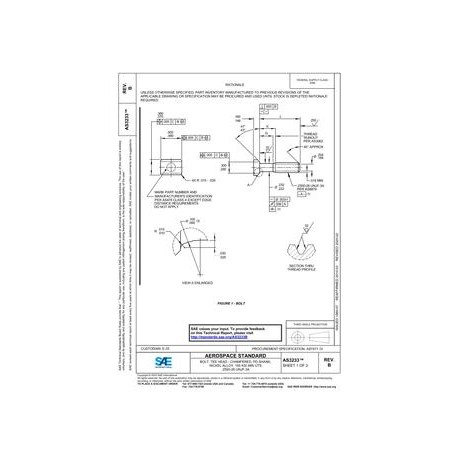 SAE AS3233B BOLT, TEE HEAD - CHAMFERED, PD SHANK, NICKEL ALLOY, 165 KSI MIN UTS .2500-28 UNJF-3A