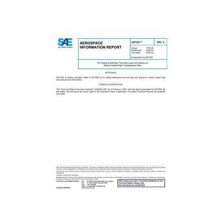 SAE AIR1263A Tin Plated Solderless Terminal Lugs and Splices on Nickel Coated High Temperature Wire