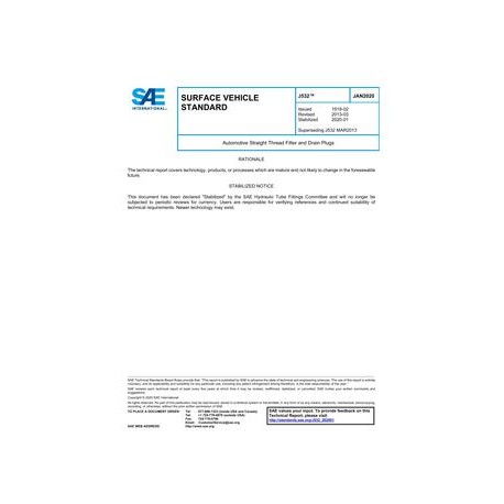 This SAE Standard includes complete general and dimensional specifications for those types of filler and drain plugs (shown in Figures 1 to 7 and Tables 1 to 3) having straight threads which are commonly used with gaskets or seals in automotive and related industrial applications.