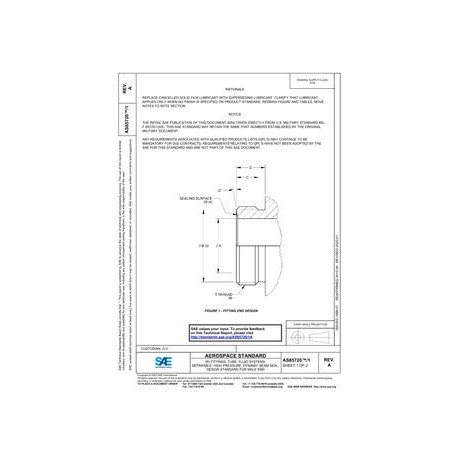 SAE AS85720/1A FITTINGS, TUBE, FLUID SYSTEMS, SEPARABLE, HIGH PRESSURE, DYNAMIC BEAM SEAL, DESIGN STANDARD FOR MALE END