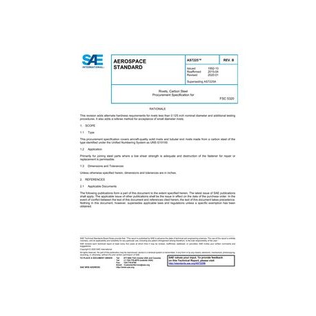 SAE AS7225B Rivets, Carbon Steel Procurement Specification for