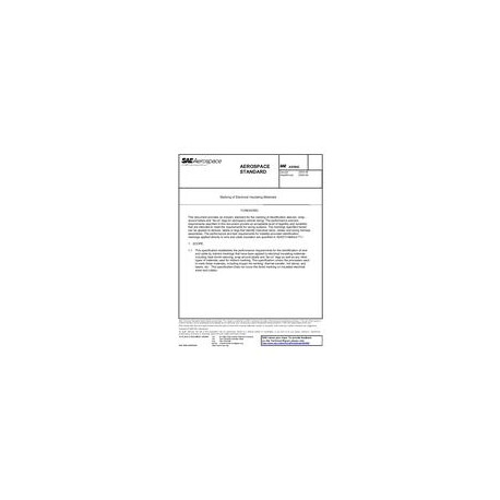 This specification establishes the performance requirements for the identification of wire and cable by indirect markings that have been applied to electrical insulating materials including heat shrink sleeving, wrap around labels and ?tie-on? tags as well as any other types of materials used for indirect marking. This specification covers the processes used to mark these materials, including impact ink marking, thermal transfer, hot stamp, and lasers, etc. This specification does not cover the direct marking on insulated electrical wires and cables.