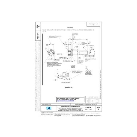 SAE AS3153B BOLT, MACHINE - DOUBLE HEXAGON EXTENDED WASHER HEAD, CLOSE TOLERANCE SHANK, AMS4967 (UNS R56400), 160 KSI, .5625-18, UNJF-3A