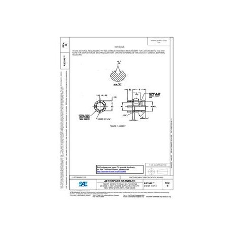 SAE AS3546B INSERT, SCREW THREAD, SELF-LOCKING LOCKED IN, KEY LOCKED, EXTRA HEAVY DUTY, SELF-BROACHING KEYS, UNS S66286