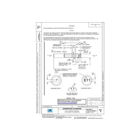 SAE AS128687B STUD - STRAIGHT, DRILLED, .3125-18UNS X .3125-24UNF-3A