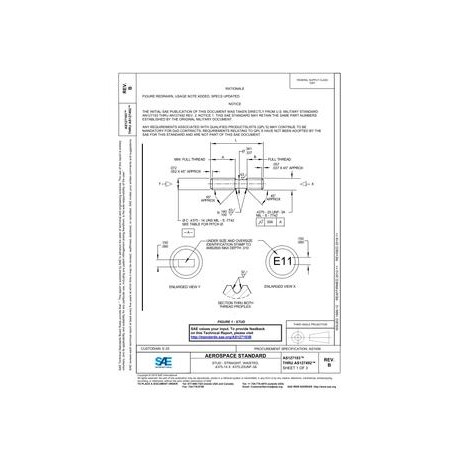 SAE AS127193B STUD - STRAIGHT, WAISTED, .4375-14 X .4375-20UNF-3A