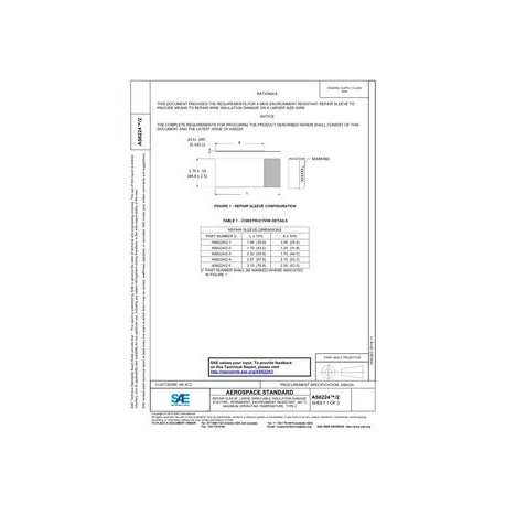 SAE AS6224/2 REPAIR SLEEVE, LARGE WIRE/CABLE INSULATION DAMAGE, ELECTRIC, PERMANENT, ENVIRONMENT RESISTANT, 260 ¿¿C MAXIMUM OPERATING TEMPERATURE, TYPE II