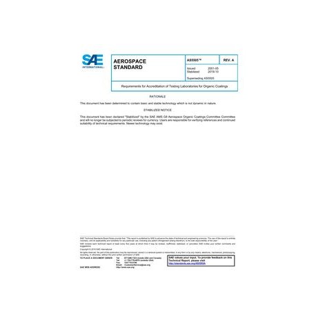 SAE AS5505A Requirements for Accreditation of Testing Laboratories for Organic Coatings (Stabilized: Oct 2019)
