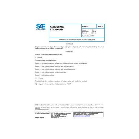 SAE AS683E Installation Procedures and Torques for Fluid Connections