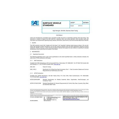 SAE J3135_201910 High Strength, 304/304L Stainless Steel Tubing