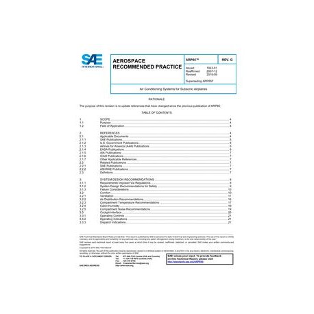 SAE ARP85G Air Conditioning Systems for Subsonic Airplanes