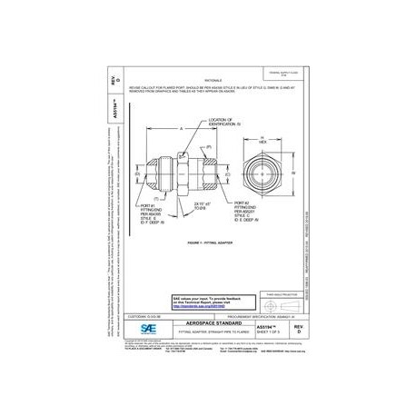 SAE AS5194D FITTING, ADAPTER, STRAIGHT PIPE TO FLARED