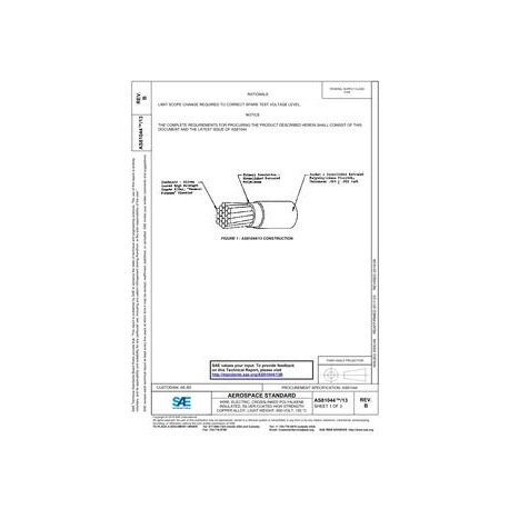 SAE AS81044/13B WIRE, ELECTRIC, CROSSLINKED POLYALKENE INSULATED, SILVER-COATED HIGH STRENGTH COPPER ALLOY, LIGHT WEIGHT, 600-VOLT, 150 ¿¿C